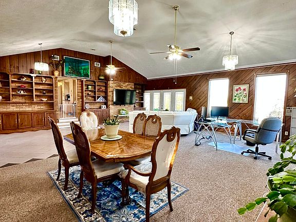 Here is the Farm on the lake you have been looking for! This gorgeous property has 9.26 acres and agricultural rights to the TVA land in front of the house. Dreaming of your own Horse Farm? Want chickens? Love Lake Life? Want space to store your vehicles inside? Homesteading? Hobby Farm? Personal Paradise? Flower Farm? Here is the Farm on the lake you have been looking for! This property has all the potential. And all the buildings, there is a detached 24 x 40 two bay garage, a large workshop, 17 x 58 equipment shed, an incredible 32 x 40 two story barn with attached 28 x 40 shed, two bay garage and there is another detached carport. Both fenced pastures are walkable. Access to the home is via a paved driveway with a slight curve that rises to the back of the home where there is an impressive double carport.