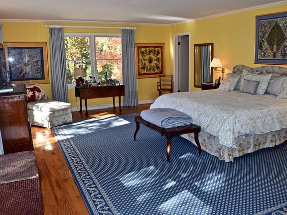 "Canary Cottage" is a beautiful secluded 3.38-acre horse property on the edge of Hitchcock Woods. Elegant residence surrounded by broad lawns & magnificent specimen trees. Gorgeously updated kitchen - stone counters, extensive cabinetry & kitchen desk - is open to the breakfast room & the sitting room. Formal dining room. Large den. Fireplaces in dining room, den, & sitting room. Wet bar. 3 BR & 2.5 BA on ground floor, including a very large master suite with office and sliding glass doors to the deck. A large walk-out basement has a recreation room, a 4-room apartment w/private exterior entrance, a small sleep-over room, & utility & storage rooms. 4-stall barn with covered hay storage, tack room, utility rooms, & heated wash stall. Two paddocks. 1-BR log cabin for barn staff. Fenced dog run. Garden shed. Only three minutes to Whiskey Road, Fresh Market & Harvard's.