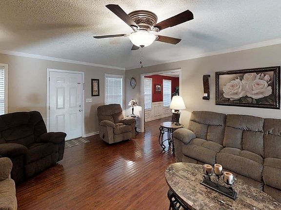 - LIVING ROOM DESC: Fireplace, Crown Mold, Wood Floor, Ceiling Fan
