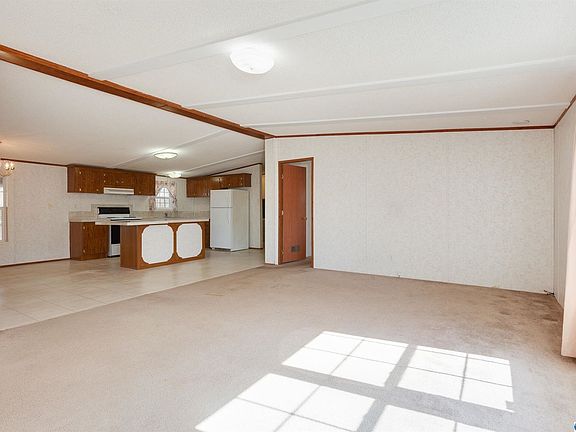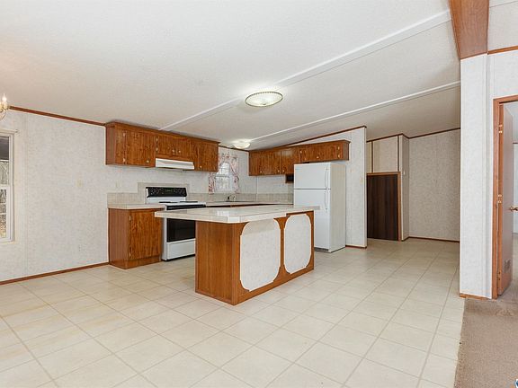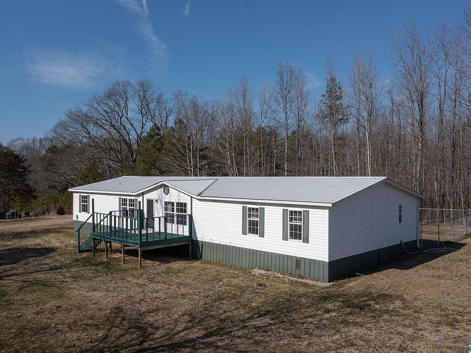Have a large family? This 4 bedroom 3 bath home is perfect for a large family! Not the typical mobile home. Living Room, kitchen & dining area boast a vaulted ceiling and a fire place! Lots of closet space! Covered back deck and a front porch. Large fenced in back yard great for letting your pets roam! The acreage is partially wooded! Plenty of cleared space for a garden. It does not have a permanent foundation.