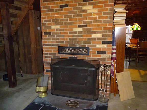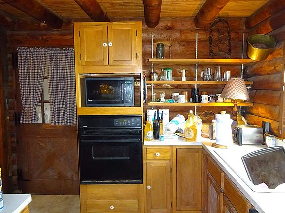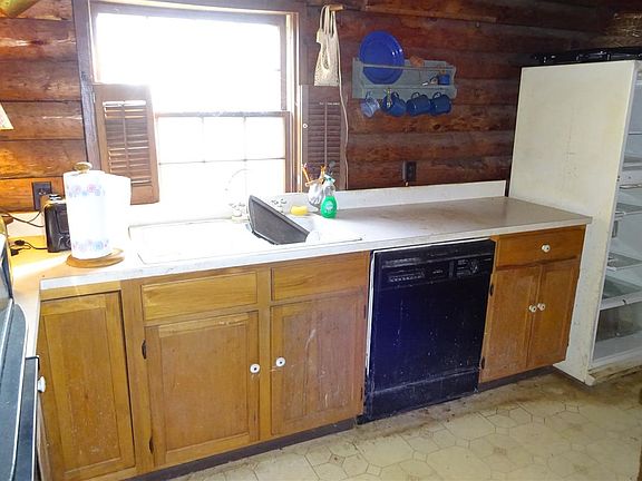 Rustic log home situated on 2.88 creek-side acres; Poured concrete full basement; 3BR/1.5 bath; Brick FP; HE gas furnace; 8x34 front porch; Fenced back yard; 24x32 detached 2.5 car garage;