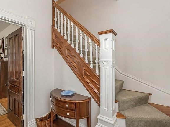 Gracious and welcoming describe this spacious home in the East College Street historic district, easily walkable to town, campus, shopping and parks.This updated and well-maintained home retains the historic integrity of the era with updated conveniences and appointments. The house was significantly renovated since it was purchased (See attached list of improvements). The remodeled kitchen is flooded with sunlight and features SS appliances, a gas range, breakfast bar, plentiful cherry cabinetry, and quartz countertops with custom tile backsplash.The addition of the mudroom offers a smooth transition from the two car garage and fenced back yard into the house. The main floor also features a lovely dining room with egress to the backyard patio, a wonderful family room with a large window seat and a wall of built-in shelving, a formal living room (parlor) facing the front of the house with a huge Victorian window, and a guest room/study with a full bath. Hardwood floors gleam throughout the entire main floor. From the gracious front foyer stairs lead to three bedrooms, a full bath, and the primary suite with its walk-in closet and remodeled bath and steam shower. The laundry is also located on this floor. A folding stairway allows access to the large attic which serves as storage space as does the unfinished basement. This lovely home checks all the boxes: beauty, location, convenience, and comfort. A must see home you will not want to miss!