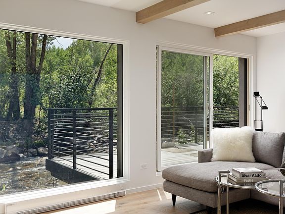 A River Runs By It. This spectacular luxury retreat sits right on the banks of the Roaring Fork, with its deck cantilevered directly over the river. An open, modern floor plan features sunlight galore and unobstructed river views. Designed by Rowland & Broughton and renovated with no expense spared, this has it all: a great room with wood-burning fireplace, chef's kitchen with top-of-the-line appliances, tranquil sanctuary of a bedroom, and spa bathroom. Quiet and serene, although just a few blocks from downtown. There is nothing like this anywhere in Aspen.