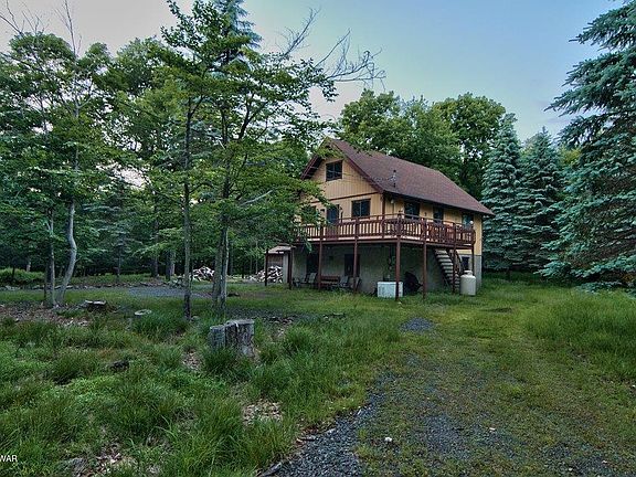 Located in an Amenity filled gated community offering a 125 Acre Lake, but you would never know you were in a community. If you are looking for a true Pocono cabin in the woods this is it! A true hidden treasure in the Poconos. If you like seclusion this is the house for you! 3 bedroom and a whole house Generator. Wrap around deck and garage. Sit by the camp fire and enjoy the real experience of a cabin in the woods! Owner will provide credit of $2,000 credit towards exterior paint.