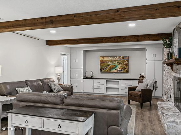 Welcome to your slice of Jacksonville charm! This beautifully updated ranch-style home offers 4 bedrooms, 3 full baths and sits on an oversized 0.35-acre lot. A custom-designed brick wall fully fences the magnificent backyard, accented with a double-wide iron gate for those larger toys of yours! The spacious and updated kitchen is a true standout—featuring quartz countertops, a large center island, and sleek stainless-steel appliances. Enjoy the flexibility of a split-bedroom layout, perfect for guests or a home office, complete with an adjacent bath. Step outside to a massive screened-in lanai that's ready to be enjoyed year-round—or easily enclosed to expand your living space. Lovingly maintained, this single-story gem offers the kind of space, freedom, and value that's hard to find these days. Located in the Grove Park community with no hoa nor cdd fees. Come see what makes this home and community so special, a community where generations of families are raised.