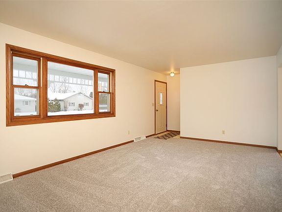 3 bedroom, 1 bath ranch with 1152+/- sq feet on dead end road. Enter through a covered front porch into the newly carpeted LR which flows through into the eat-in dining room and kitchen with an abundance of cabinetry. Stove and Dishwasher are included. Patio doors in this area lead out to the patio and treed lot. Continuing through the house are 3 carpeted Bedrooms and a full BA w/shower over tub & linen closet. The LL level has one room partially finished, laundry room w/ washer and dryer included, and stubbed for a half bath w/lots of storage. Attached 2 car garage.