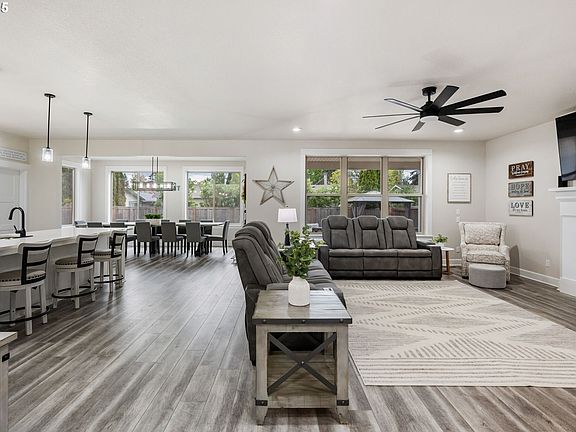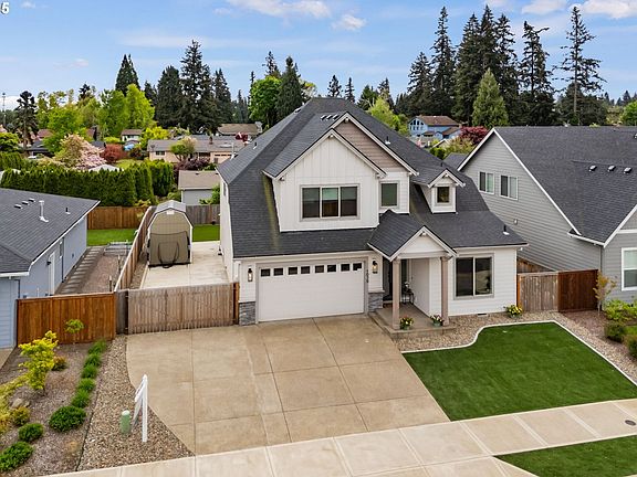 Offer Received, all offers due by 5PM on May 9, 2025. Welcome to this charming Modern Farmhouse! With 4 bedrooms, 2.5 baths, that could easily be called a 5 bedroom, this home is both spacious and versatile. As you enter, you'll be greeted by high ceilings, beautiful floors, and an open layout that seamlessly connects the kitchen, dining, and living areas, complete with a cozy gas fireplace. The downstairs "office" is convenient as an office or with its large walk-in closet could be a great ground floor bedroom. The kitchen is perfect for cooking and/or entertaining, featuring a large island, lots of countertop space, stainless steel appliances and a well-organized walk-in pantry ~ you will have everything you need and more. Step outside to your private backyard oasis, where you can relax in the hot tub or enjoy the covered patio, all surrounded by low-maintenance turf grass. No need for a lawnmower at this house! The backyard includes a bonus shed for storage and coveted RV parking behind a secure fenced yard. Plus, there's an oversized garage and extra parking space, AND with NO HOA to worry about! Located near an excellent scenic walking path, Maple Street Park, & Willamette Valley Country Club this home offers the perfect blend of luxury, space, low maintenance and convenience. Don’t miss your chance to make it yours!