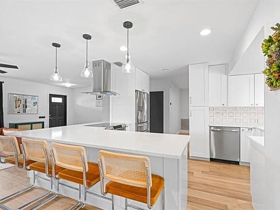 Welcome to this meticulously updated 3-bedroom, 2-bathroom pool home, perfectly situated in East Boca and offering unparalleled convenience to everything you desire. Whether you're seeking a long-term annual lease or a memorable seasonal retreat, this property is designed for sophisticated living and seamless comfort. The heart of the home is a chef-inspired, updated kitchen, anchored by a magnificent island that provides ample seating and a central hub for daily life. A seamless flow connects the kitchen to two distinct and spacious living room areas, offering both formal and casual spaces for relaxation. Enjoy a quiet evening in the second living room, complete with an intimate fireplace, or convert the dining room table into a pool table for a friendly game. (see more)