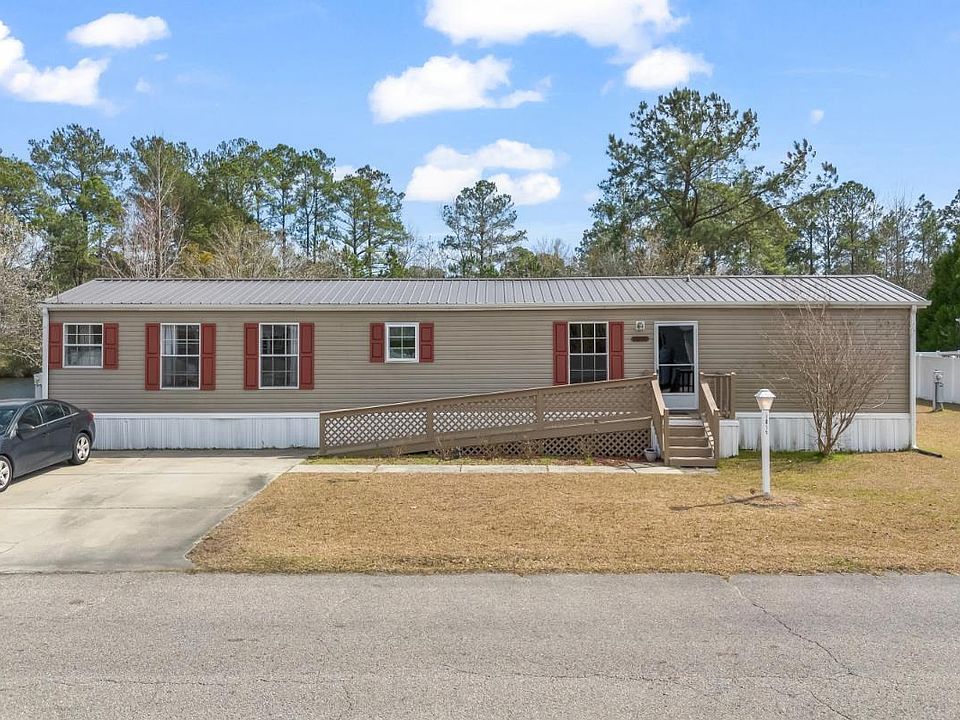 Don't miss this opportunity to own this 2 bedroom, 2 bathroom 16x66 2006 Destiny-model home in the quiet community, Conway Plantation! This home is located within a very well maintained community with reasonably priced lot-rent fees that include access to the community pool, kids playground, basketball court  and is pet friendly! The home itself features laminate flooring throughout the main living areas with cozy carpets in the bedrooms, and a full kitchen equipped with all appliances! Other upgrades include a moisture barrier under the house, metal roof, termite bond, upgraded and well manicured landscaping, and a large attached storage shed that conveys with sale. Enjoy afternoons relaxing on your huge back deck with an incredible view of the pond and an extended concrete patio, or socializing with friendly neighbors at the community amenities. Located close to all of the Grand Strand's finest dining, shopping, golf and entertainment attractions, just minutes from the colleges and the famous Conway Riverwalk! You won't want to miss this. Schedule your showing today!