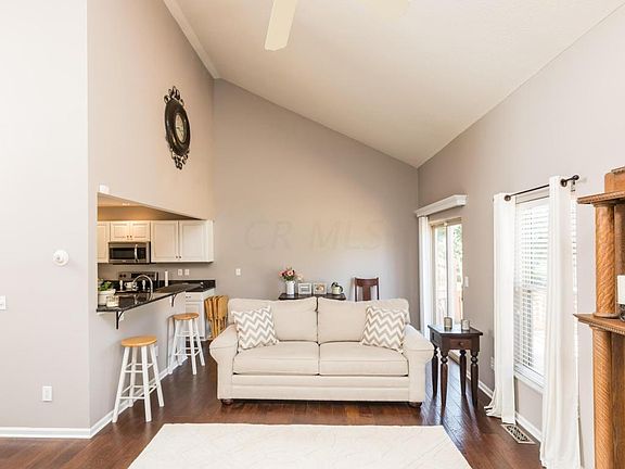Be prepared to fall in love with this completely updated east facing home located close to Hilliard, Ohio State and downtown! Step into the sun filled foyer and proceed to the great room with vaulted ceilings, wood burning fireplace and an abundance of windows. Dark wood laminate flooring throughout the main level. The kitchen features white cabinets with soft close drawers and roll-out shelving. Granite counter tops and stainless steel appliances. A huge one bowl deep sink makes washing dishes easy. Entertain guests in the cozy dining room or at the breakfast bar in the kitchen. A first floor master bedroom with tiled master bath and first floor laundry complete this level. Two bedrooms with Jack & Jill bath upstairs. Rec room and huge storage area in the basement.