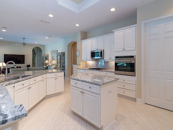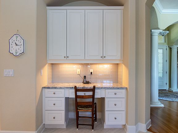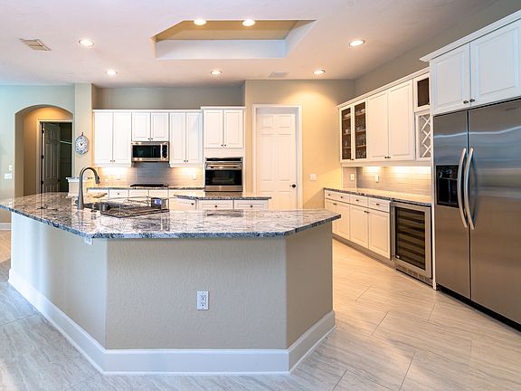 - Interior Features: Ceiling Fans(s), High Ceiling(s), Master Bedroom Downstairs, Split Bedroom, Crown Molding, Walk-In Closet(s), Open Floorplan, Solid Surface Counters, Solid Wood Cabinets, Eating Space In Kitchen, Tray Ceiling(s)