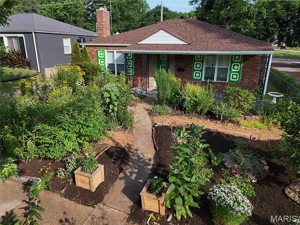 Embrace eco-friendly living in this charming 3-bedroom home with a native front garden designed to attract pollinators and reduce maintenance. In the backyard, four elevated planting beds await your veggie dreams, while blackberry bushes line the side yard—perfect for foraging your own summer treats! Inside enjoy an open floor plan with a roomy living room, fresh carpet in the bedrooms and a finished basement with bonus storage and 3rd bedroom. Outside there is a concrete patio for grilling (built-in grill is non-functioning), off street parking with a 2-plug electric car charger, fenced yard and a NEW roof and gutters!! Other updates include some new windows (2019), tankless water heater (2017), Humidifier (2018) and furnace (2018)! Convenient location to Kaufman Park, trails and shopping! Fireplace is non-functioning. U City inspection has been completed.