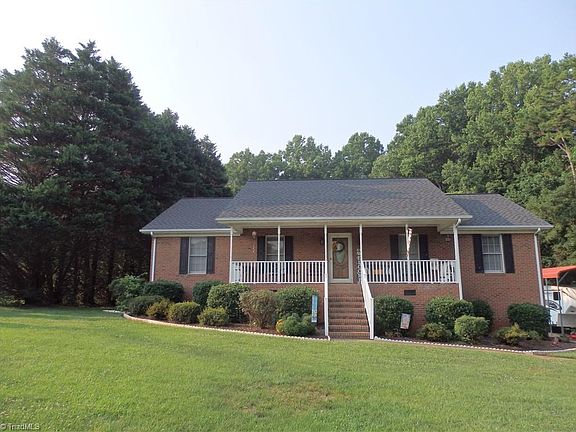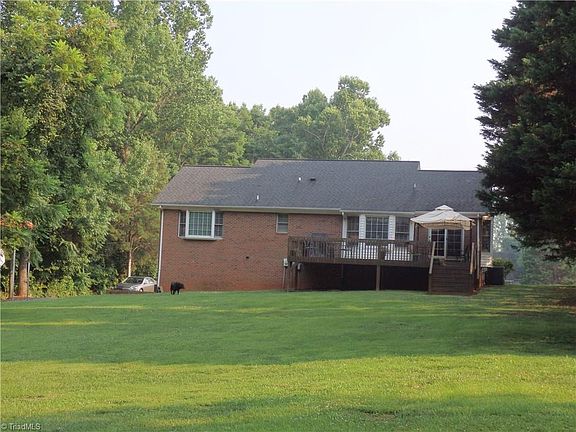 3 bedroom, 2 bath brick home in Northern Randolph County. 27 X 8 concrete, covered front porch. 28 x 12 back deck. Kitchen with granite countertops, breakfast nook and all kitchen appliances remain. Private back yard with outbuilding and RV shelter. Partially finished, heated and cooled, basement with oversized double garage. Primary bedroom with walkin closet. Primary bath with garden tub, separate shower and additional walkin closet. Located on dead end street. Easy access to Hwy 220. Gas logs in living room. SELLER CANNOT CLOSE PRIOR TO 9/10/21