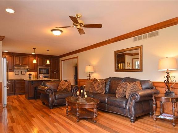 Updated brick Ranch on a finished basement! This beautifully updated home features four bedrooms and three full bathrooms, formal dining room, family room with fireplace open to the gourmet kitchen, formal living room and huge master suite with 24x14 addition with tray ceiling, recessed lighting, his and her vanities, whirlpool tub, separate shower, walk-in closet and laundry. The kitchen includes soft-close cabinets with under cabinet lighting, granite countertops, stainless appliance package and kitchen bar. Gorgeous Brazilian teak hardwood throughout the main living areas, plantation shutters on the front of the home, updated fixtures, crown molding and other beautiful trim work. Additional two bedrooms have new designer carpet. Remodeled bathroom with travertine flooring and tiled shower, double bowl raised vanity with granite countertops, large screened porch with recent uncovered deck addition, fenced yard, large two car garage with workshop