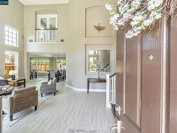 Welcome to this gorgeous home in desirable Crystyl Ranch! Upon entry, the first floor boasts vaulted ceilings & two-story windows that fill the living and dining rooms with natural light. The open-concept kitchen is a chef's delight, equipped with gas cooktop, double oven, wine fridge, granite countertops, & large island ideal for meal prep & entertaining. The spacious family room is perfect for large gatherings, with direct access to the patio & pool. The first-floor bedroom with full bathroom & walk-in closet offers flexibility as a guest suite, home office, or gym. Upstairs, retreat in the primary suite featuring a fireplace, soaking tub, & private balcony, perfect for unwinding and watching sunsets or stars. The loft provides endless possibilities for customization, & two additional large bedrooms & a full bathroom featuring dual sinks are perfect for family or guests. Outdoors, read a book on the deck, relax in the hot tub, or swim in the sparkling pool – it’s your own oasis. Residents of Crystyl Ranch enjoy access to HOA amenities, including clubhouse, tennis/ pickleball courts, pool, & playground. Families will appreciate the excellent local schools, including Northgate and Clayton Valley Charter. Experience an exceptional quality of life in this Crystyl Ranch gem.