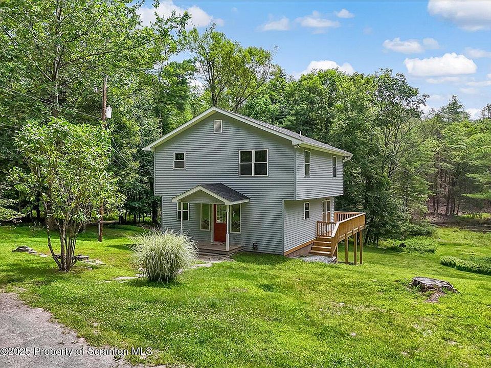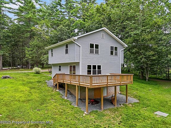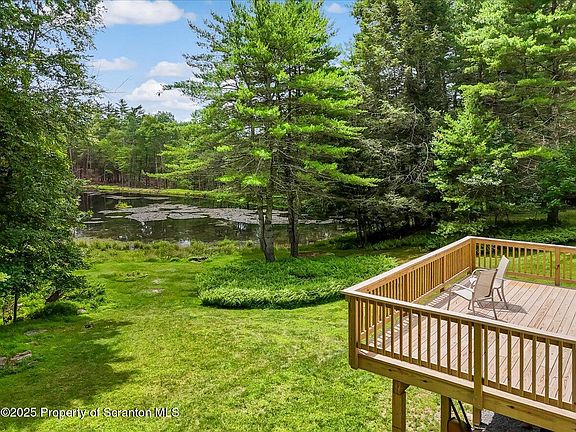 Fully renovated and move-in ready, this 3-bedroom, 1.5-bath home located on 1 acre offers a serene view overlooking a beautiful pond with no HOA. Located minutes from downtown Hawley and Lake Wallenpaupack for easy access to shopping, restaurants and recreation. Inside, you'll find a bright open-concept layout with all-new luxury vinyl plank flooring, a beautifully updated kitchen featuring new solid surface countertops, cabinetry, and a brand-new refrigerator. New carpet in all bedrooms. The full bath has been modernized with new vanities, and a new washer and dryer are also included. Additional recent upgrades include a new roof and new well. Step outside onto the brand-new deck and enjoy peaceful views of the pond. The unfinished basement provides additional potential, and a small horse stable on the property offers extra storage or flexible use. Ideally located, this home offers the perfect blend of modern updates and quiet country living.