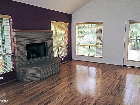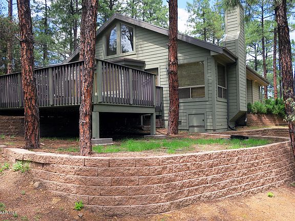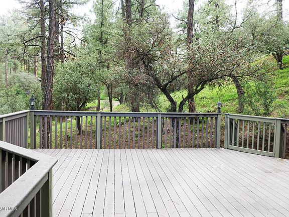 Cozy mountain home in the pines of Prescott. Well maintained property with master on main level and great large deck in back for summer enjoyment. Pine tree views along with an upstairs loft with murphy bed that conveys with home. Loft can be either office or third bedroom. Living room has nice fireplace. Large area off kitchen for dining.