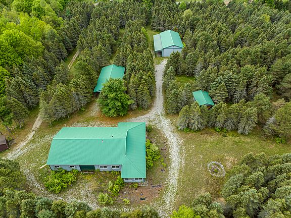 Potential business opportunity? Hobby farm? This 12+ acres has it all in a tranquil country setting, just 5 miles from town. This home is perfect for nature lovers, with lots of natural light. Each of the 3 bedrooms has ample closet space, vaulted ceilings & fans for extra comfort, though the home also has AC. The upstairs loft could be used for extra sleeping or even an office, with the 2nd screen porch overlooking the picturesque creek running through the property. On the main level, the great room allows for large gatherings, & space for seating at the snack bar. The kitchen has an island for extra prep space & cabinet storage below. The home has a 2 car att. garage. What makes this property stand out are the possibilities provided by the 5 outbuildings! Check out the pictures!