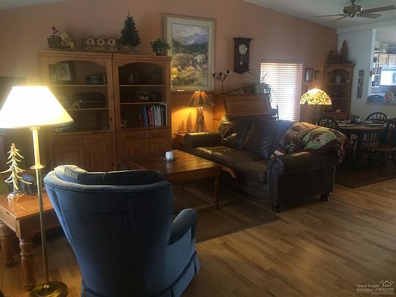 Desirable 3 bedroom, 2 bath home in The Pines community of Sisters, Oregon. Great room with open floor plan. Many upgrades: heat pump for central heat & AC, tiled backsplash & trim on solid surface counter tops, laminate floors in great room, tiled bathroom floors, wood blinds, 2 solar tube skylights, deep window sills. HOA includes street & lawn maintenance, gated entry, and perimeter fence upkeep. Community room with exercise area available to homeowners. Peek-a-boo mountain view over the tree tops!