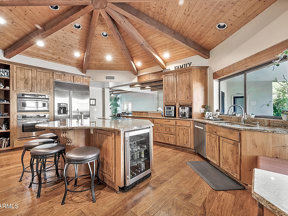 For enhanced versatility, the property also features a separate structure that can function as an office, guest suite, or studio. The lush grounds also boast an impressive organic garden, and a variety of citrus trees that flourish in this Arizona climate. The yard is low-maintenance, featuring artificial grass that looks pristine year-round without the need for constant upkeep.
