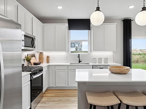 Our new-construction Dayton plan is just what today's buyers are looking for, offering four bedrooms and a loft! On the main floor of the home, you have an open concept design with the kitchen, bathroom, cafe and gathering room, as well as a bonus flex room. Upstairs, you will find four bedrooms, loft, two bathrooms and the laundry room. Stop by our office model today for more details as well as other homes available! Office hours are Thursday - Monday from 11am - 6pm at 10464 Grospoint Ave S, Cottage Grove MN 55016. Incentives available with seller's affiliate lender.