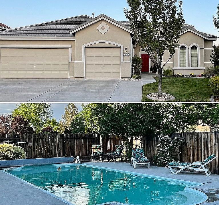 Single story, 3 bedroom, 2.5 bath + office/den -- 3-car garage. -------------- Will cooperate with Buyer's agent. ---- We are not accepting contingent offers. ---- Pre-qualification will put you ahead of other home-seekers! ---- A rare home in Reno with a Built-in Pool for those HOT August nights! - !!! Gas fireplace for chilly, winter nights. !!!! -- Comfortable & spacious home, with 10' ceilings and a covered patio makes entertainment a delight! This home has a Family Rm., and a formal Dining Rm / or Living Rm. and an office, with a view. -- Kitchen has lots of cabinets! The Master Bath and Guest Bath, both have dual sinks. - Large walk-in Closet, in Master Suite! -- ADT Alarm equipped! A WORD ABOUT "FOR SALE BY OWNER" ------------------- We use the standard forms, needed for a Sale. -------- We'll take those forms to an Escrow/Title Co. and they will ensure that all are filled out correctly. The Escrow/Title Co. is what Realtors use, to make sure the house is not in a flood-plain, earthquake fault, etc. Escrow/Title Companies protect the Buyer and we'll go thru the same process as would a Realtor. ------- You pick the Home Inspector and the Escrow/Title Co., of your choice, so you are in control of the buying-process!