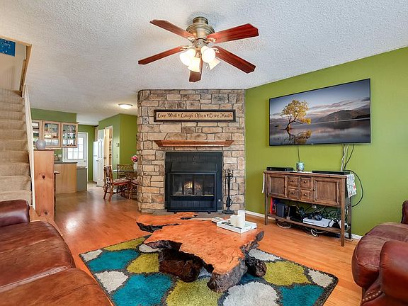Beautiful 2 BR townhome that backs to green space. Open concept layout with brilliant natural light. Gorgeous hardwood floors throughout the main level. Updated kitchen opens to the dining room. Cozy family room with wood burning fireplace. The second level boasts a large secondary bedroom with mountain views, the master suite and the laundry, including stackable washer and dryer. The master retreat features vaulted ceilings, his & hers closets and opens to a gorgeous shared bathroom. Private fenced yard that backs to common grassy area and green space giving the feeling of a large yard. Conveniently located to shopping, restaurants and entertainment.