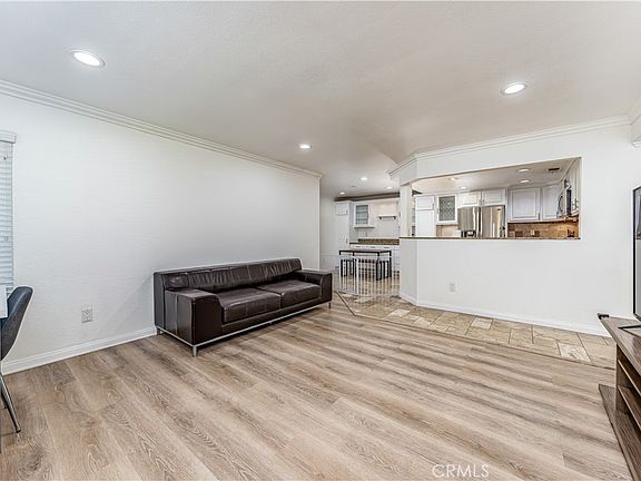 Immaculately maintained 3-bedroom, 2-bathroom condo offering desirable greenbelt-front location within the Briar Oaks Community. A cozy front porch area invites you to the main entry. Enter to see fresh paint, luxury vinyl flooring, crown molding, and dual pane windows throughout the home. The open kitchen and living room are very bright and spacious. White cabinets equipped with modern hardware, earth-toned tile backsplash, granite counters, and tile flooring are showcased in the roomy kitchen. Plentiful counter space will make cooking meals easy. Stainless steel appliances include a 5 burner gas range/oven, dishwasher, and microwave. Direct access to the garage is also tucked away by the adjoining dining area. Nestled down the hall are the master suite, a 3/4 bath, and two guest bedrooms. The master boasts an expansive mirrored closet and private en suite. Dual vanity, a walk-in shower complete with natural-toned finishes, dual showerheads, and a spa-style bench are shown in the en suite. Upgrades presented in the home include a new main-entry metal screen door, brand new water heater, central HVAC, walk-in shower addition in the hallway bath, and direct access to the 1 car garage, and 1 additional assigned carport parking. Safe with gated entry, the community has amazing amenities such as a large sparkling pool, paid trash, basic internet, and lush greenery. Prime location just a short ride away from amazing shopping, eating, and entertainment such as Knott’s Berry Farm, Soak City, Rodeo 39 Public Market, In-n-Out, Canes, Porto’s Bakery & Cafe, Medieval Times, and much more! Conveniently located near the 91 FWY.