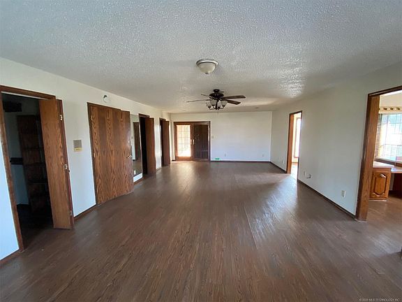 Large home featuring 6 Bed/4 Bath on 1 acre m/l west of Vian. Large family for for entertaining with a wet bar and fireplace. Kitchen with french doors leading to a deck, laundry room with pantry. Upstairs has 2 oversized bedrooms with double closets and a large bathroom featuring double sinks and vanities. Master suite has its own office/nursery/hobby room with double walk-in closets, jetted tub and separate shower. Detached garage w/additional rooms. Could easily become two 3/2 units. Sold "AS IS".