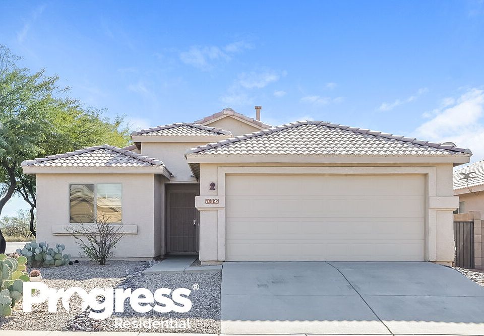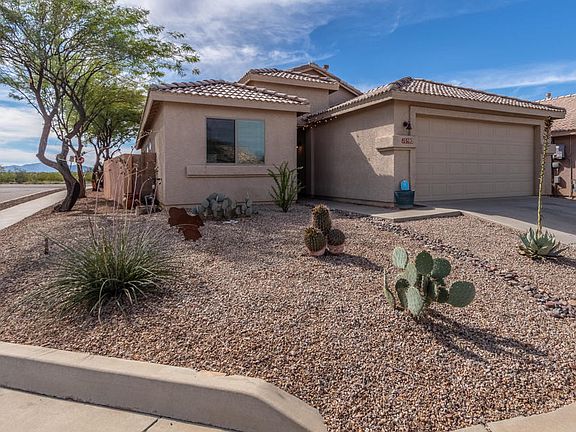 Great opportunity to purchase a beautifully maintained Mesquite Ranch home on premium corner lot overlooking natural desert w/ expansive mountain views. Popular 3 Bedroom/2 Bath floor plan offers an easy flow between Great Room/Kitchen/Dining Area. Split floorplan includes large master suite w/ bay window; TWO walk-in closets. Plus 2 additional bedrooms in separate wing. Home has many upgrades including laminate flooring/tile throughout; corian kitchen countertop & newer appliances; landscaped rear yard w/easy care turf, pavers, play area; NEW HVAC in 2016. Enjoy this great home and community with 2 pools, 3 playgrounds, basketball, volleyball, parks & more. Located in the VAIL School District. Under Photos tab, click VIDEO to see a video of this lovely home