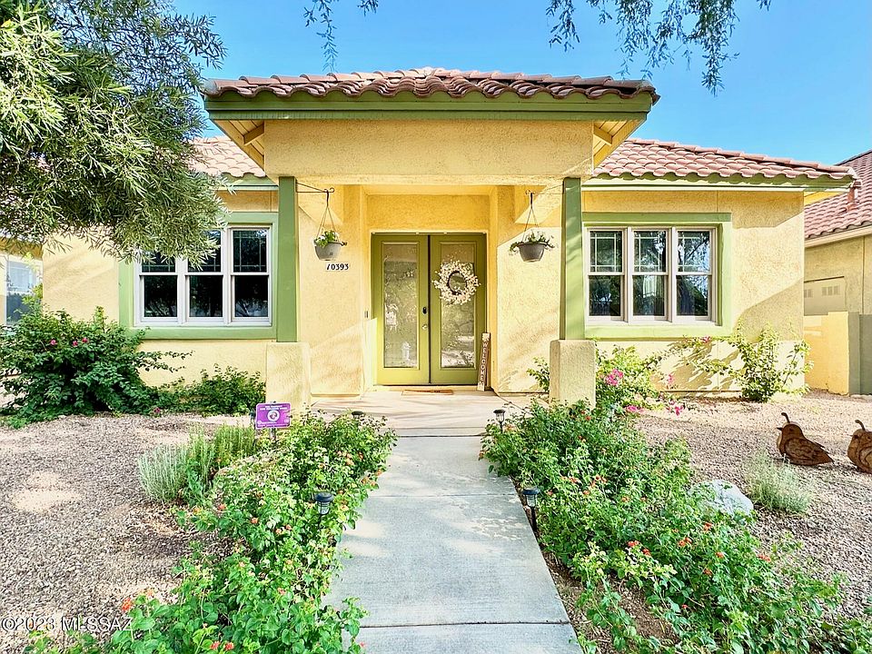 Perfect opportunity to live in coveted Civano neighborhood! This charming 3 bedroom 2 bathroom home is perfectly located close to neighborhood pool, tennis courts, shopping, medical services, golfing and schools. Welcoming front porch and grand double front doors grant entry to wide open living spaces and tall ceilings that give the home a large feel. Mexican tile throughout home. Kitchen has granite countertops, stainless steal appliances, island, and breakfast/dining area. Granite in master and hall bathrooms. Master has large walk in closet, double vanity and shower/tub. Back yard is perfect for entertaining with extended covered patio and desert landscaping. Detached two car garage for private home entry. Must see and buy!!!