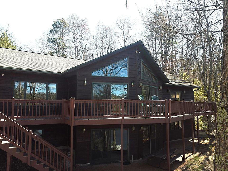 Rare Lake Seventeen opportunity. This 4 bedroom, 3 bath chalet style ranch home with walkout lower level. Premium lake with privacy and seclusion. The home has had many recent updates including new flooring, lighting, granite countertops, sink and faucets. The expanded island is wrapped in river rock. Lakeside primary suite has been renovated with new tile flooring, a walk-in tile shower, new window, faucets and double sink with marble top. Lower level has two oversized bedrooms to allow for plenty of guests, plus a rec room with fireplace and an office. Your favorite feature may just turn out to be the huge 3 season room off the kitchen. Deck boards have been replaced with maintenance free boards. New floating pier with ladder, bench and paddle board/kayak rack. Just added in 2022, a steel shed with 40x40 slab will store your UTV and boats so they are ready when you need them. Large fire pit for entertaining. This property on the "quiet side" has it all.