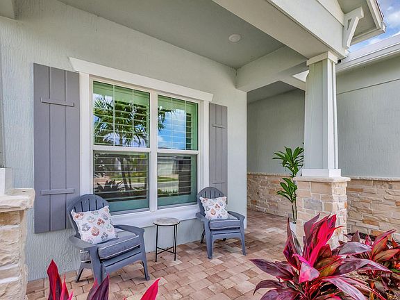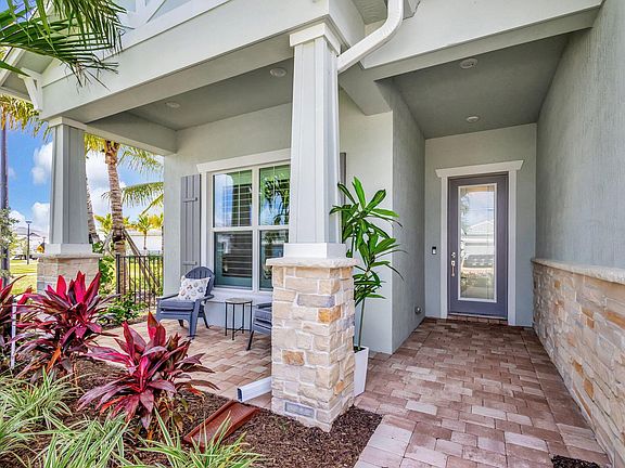 This beautifully bright and welcoming home features three luxurious bedroom suites, an office, and a spacious two-car garage, all newly built in July 2024. Enjoy breathtaking, unobstructed long water views from this premium water lot in Avondale at Avenir, complete with a generous private side yard. The home boasts modern coastal upgrades throughout, including a cozy fireplace in the great room. Step outside to the extended screened patio, featuring a full picture frame design, an outdoor kitchen, and inviting seating areas--perfect for entertaining. Inside, you'll find top-of-the-line window treatments and 85'' flat-screen TV. The gourmet kitchen is equipped with high-end appliances and ample storage, while the 2 car garage features epoxy flooring, EV Charger and organized stor