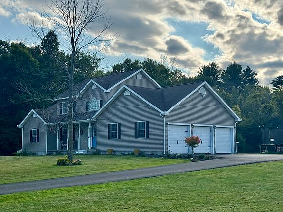 Discover nearly 2,500 sq. ft. of beautifully finished living space in this charming colonial, set on approximately 8 acres of land. This home features 3 bedrooms, 2.5 baths, and a spacious 3-car attached garage. The first-floor primary suite offers a walk-in closet and a relaxing soaking tub, creating the perfect retreat. An inviting entryway with a striking staircase leads to two additional bedrooms and a versatile fourth room—ideal as a guest room, home office, or playroom. Convenient first-floor laundry adds ease to everyday living.