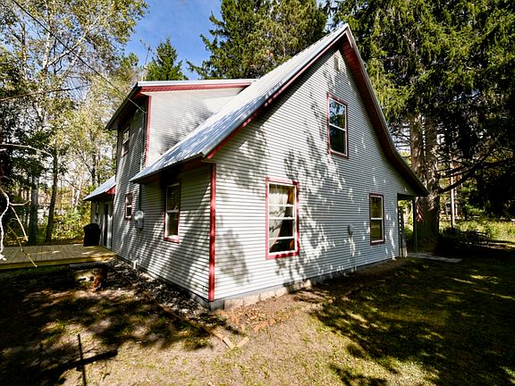Spacious 3-4 bedroom, 2 full bath home offering over 1700 sq. ft. of living space on 2.3 acres. Interior features include ceramic and wood flooring, custom-built kitchen cabinets, and fresh interior paint in progress. A new steel roof was installed in 2025 for added value and peace of mind. This property is equipped with area for pellet stove, providing efficient heating options throughout the home. There is a 12' x 16' new deck. In addition to the main residence, the property includes a 5000+ sq. ft. aluminum building offering ample space for business use, storage, or a variety of other purposes. An additional stone outbuilding houses a wood burning furnace should you desire Hydronic Heating. This adds even more heating flexibility and functional space. Property offers both comfortable living and excellent potential for work, storage or hobby use. Home entry is coded. You will need to call to get code. SentriLock is on barn door with key to door. No power inside barn, so you will need a flashlight when showing. Seller is offering $2,000.00 concession for interior paint.