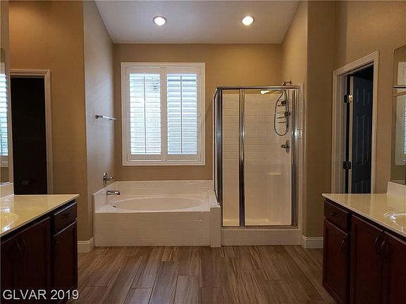 SUMMERLIN MESAS! BEAUTIFUL UPGRADED 4 BEDROOM HOME! LAMINATE FLOORING DOWNSTAIRS, SHUTTERS, LARGE BASEBOARDS, HUGE MASTER BEDROOM WITH 2 WALK IN CLOSETS, KITCHEN HAS GRANITE COUNTERTOPS, STAINLESS SINK, GLASS BACKSPLASH, UNDER CABINET LIGHTING & PANTRY. FRONT BALCONY W/ MOUNTAIN VIEWS, REAR YARD WITH GRASS & NO HOUSE DIRECTLY BEHIND. COMMUNITY POOL & SPA & MULTIPLE PARKS. RENT INCLUDES LANDSCAPE, SEWER AND TRASH. NO PETS & NO SMOKING.