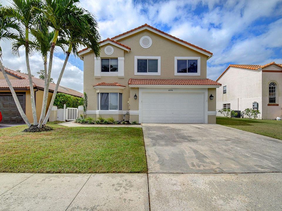 Desirable 4 bed, 2.5 bath home on a lake in the much sought-after community of Boca Springs! Home boast a separate living room, accentuated by the bay window; perfect entertaining area away from living and family areas. The dining area opens into a large living and family room, overlooked from the kitchen, with windows overlooking large backyard and lake. Come enjoy sitting on a screened in patio while you relax and look out at the lake. Home features an oversized master, walk-in closet, and private master bath. A very desirable community, Boca Springs boasts a playground, pool, and tennis courts all included in its low maintenance cost.