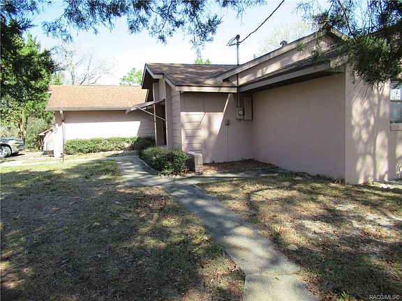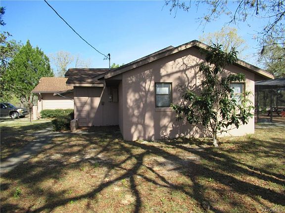 Let your horses run on this 5 acre property located in Circle M. The home sits high on the hill overlooking the beautiful oaks on this corner lot. This 3 bedroom 2 full bath + office split-plan home has a new a/c system installed just last year. The home once had a pool, but now you can enjoy the newly created patio area which is full screened in. The 2 car garage features a garage door opener and remote. You can sit by the wood burning fireplace in the cooler months. This home also includes a central vac system to make cleaning easy on the newly installed laminate flooring. Outside, there is a workshop or storage area with power, and also a pole barn for the animals. Enjoy the long circle drive as you pull up, or park on the extended parking pad. The roof has architectural shingles that have lots of years left. Come see this wonderful Citrus county home today!