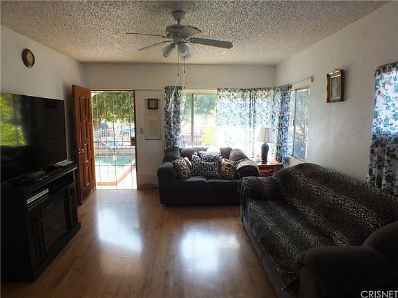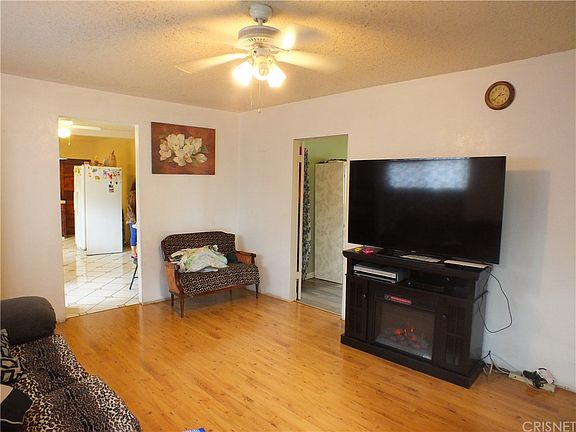 This beautiful home is nestled on a large 8,100 square foot lot in a nice Pacoima neighborhood and would be perfect for any first time buyer. Conveniently located in the heart of the city, on the same street next Pacoima City Hall. The majestic groomed shade trees, enhance its curb appeal. The living room is spacious with its original hard wood flooring. The family's cook is going to truly appreciate the large easy care tile kitchen space, tile counters, plus the convenience of the large eat in-kitchen dining area with multiple windows that bathe the dining room in natural light with its easy backyard access. Energy efficient ceiling fans throughout. 2 bedrooms, one bedrooms has new beautiful bright pergo flooring. Jack and Jill bath room that conveniently connects both bedrooms. Enjoy the huge backyard with countless possibilities that can accommodate some of your families' most cherished events and recreational vehicles. Huge drive way provides plenty of off street secure parking. Almost 4 car detached garage. Hurry this property will not last long.