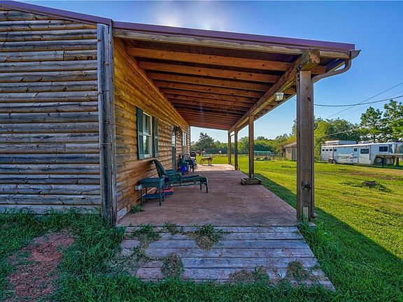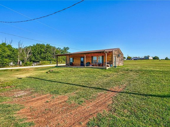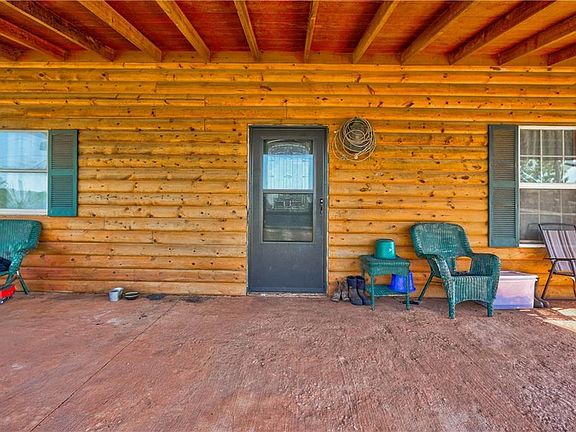 Looking for a rustic log cabin home on 3 acres, well here it is! This cute 2 bedroom bungalow is located right on Highway 62 which makes it a great location. It has a nice size kitchen with lots of cabinets, great front porch for you to enjoy. Fenced for horses. Tilt-in double pane windows. Needs some TLC but will be a great place for someone. Small outbuilding with overhead garage door.