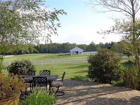Modern living for you AND your horses on 11+ acres. Stunning 3/4 bedroom colonial style open floor plan with 1st floor master suite and spectacular 2 story great room with floor/ceiling stone fireplace. Bright and open views of horses on pristine pastures/hay field. Well-designed kitchen has stainless steel appliances and a built-in wine cooler. There is a 1st floor laundry, open foyer, a loft and 3 car garage. There is also a partially finished basement with a fireplace & plenty of storage. The DREAM BARN has 6, 12x12 stalls that each open to paddocks or pasture and an outdoor sand riding arena. Barn has hot/cold water wash rack, a kitchenette area, washer/dryer for horse laundry all on its own well. All for your convenience, the barn has hay/tractor storage. There is even a parking lot for multiple trailers with turn around, and a cemented manure pit area. Lucky, Lucky are the horses and their owners that get to live here!!!