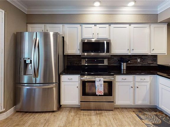 - Interior Features: Ceiling Fans(s), Eating Space In Kitchen, Split Bedroom, Stone Counters, Walk-In Closet(s), Crown Molding, Solid Wood Cabinets, Living Room/Dining Room Combo, Window Treatments