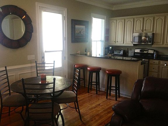 This lovely 3 bedroom 2.5-bathroom home is exactly what you need for your lifestyle in Charleston. The first floor features a well-equipped kitchen, spacious living room with flat screen television and a half bathroom providing the perfect space for entertaining or a recap of the day with friends. Moving up to the second floor you will find two bedrooms joined by an oversized bathroom. Each bedroom has its own closet and access to the upstairs porch. The first bedroom has a plush king size bed, flat screen television. Bedroom two is equipped with a queen size bed. Moving to the top floor you will find the piece de resistance; a completely private master bedroom. This bedroom has all the comforts of home with a queen size bed, reading chair, large closet and a master bathroom. The home also comes with two parking spaces.