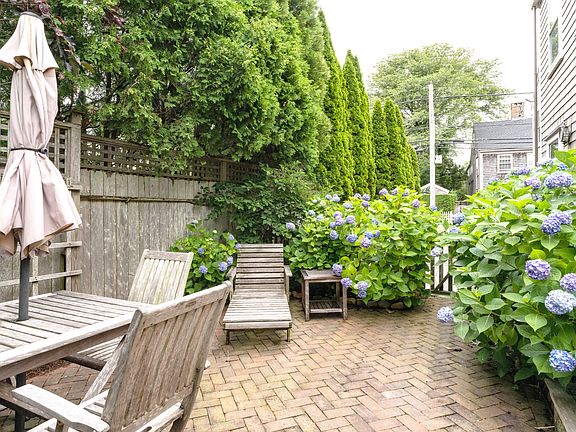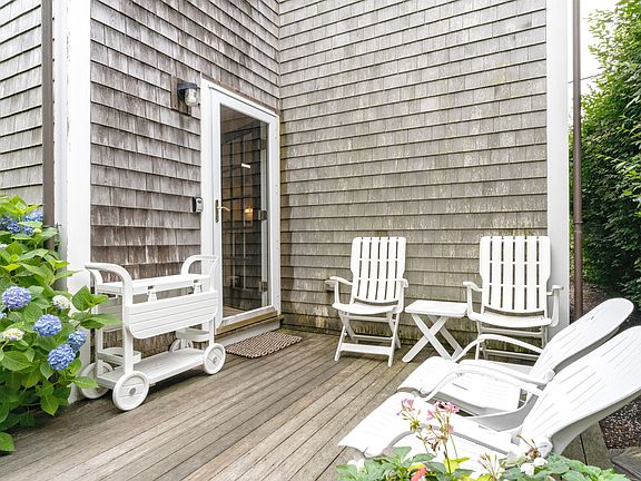 A quick jaunt from the ferry will bring you to this wonderfully renovated Orange Street property, where three floors of indoor living space and a fenced-in patio complete this in-town retreat. A stone’s throw from many of Nantucket’s most beloved locations and amenities, this two-bedroom condo is poised to help make your weekend getaways unforgettable. Situated on the back portion of the property, this unit offers an extra air of privacy and is accentuated by flourishing hydrangeas.