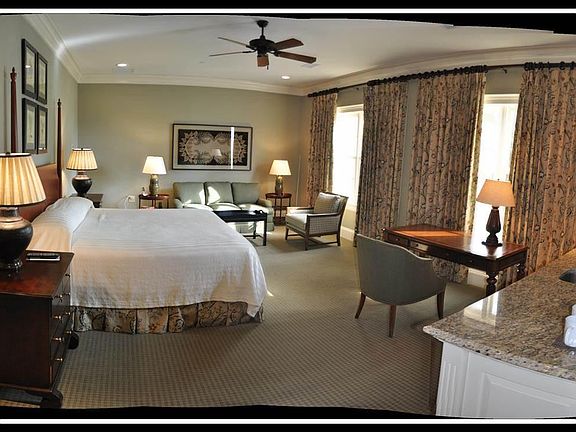 Stunning views of the golf course and lake from this one bedroom/one bath spacious Suite. Located in the private gated community of Forest Creek Golf Club overlooking the famed South golf course. The Forest Creek Golf Clubhouse features 11 well appointed Suites on the third floor, each privately owned. Small Kitchenette area features a granite counter-top, wet-bar sink, small refrigerator and custom cabinetry. This Suite boasts over 500 square feet with a large sitting area that includes a Queen sleeper sofa. All Suites feature a King size bed, flat screen TV's and were exquisitely designed and furnished by Ferry, Hayes & Allen Designers from Atlanta, GA. All furnishings and window treatments are included. All Suites have the potential for rental income from existing Members of Forest Cre