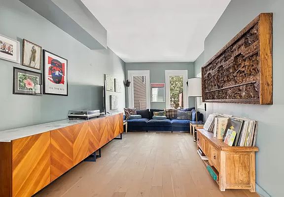 Greenpoint's Gem! This renovated single-family house will win your heart with its charming 3-story interiors, your own private parking space and 3 wonderful outdoor spaces: a quiet front-yard with a large apple tree, Sunny South facing backyard and a lovely terrace right off your living room! All this in a prime location close to the newly-developed waterfront area that includes parks, restaurants, shops and many more neighborhood amenities. Set on a lovely tree-lined block, 104 1/2 DuPont is a unique gem set substantially back from the quiet street, affording a feeling of tranquil living. Past the parking area is a spacious front patio that's perfect for alfresco dining and barbecues. Enter the main level to find a gracious open-concept interior with a large dining area, and well-appointed kitchen with wood cabinetry, tasteful tilework, and stainless steel appliances. Off the kitchen is a bathroom with a washer-dryer, and a glass-paneled door to the beautiful backyard patio oasis. Here you'll enjoy plenty of room for lounging with friends and family, hosting summer cocktail parties, relaxing with the newspaper, and tending to your garden. The light-filled upper level presents a generous living room with airy 9'1" ceilings, ample wall space for hanging art, and a versatile layout for various seating arrangements. Beyond that is a home office brightened by triple windows, a perfect hideaway for working remotely. Also on this level is access to a sizable terrace for even more outdoor pleasure. Level 3 presents serene sleeping quarters, with 2 comfortable bedrooms, each with 3 windows, and a full hall windowed bathroom between them. Other highlights are hardwood floors, exposed brick, and chic color tones. This special offering is a great primary home AND investment, situated on the vibrant north end of Greenpoint, just 2 blocks from the fast-growing waterfront area, Greenpoint Landing, that's brimming with new restaurants, retail, public parks, and new high-end residential developments. Also right nearby are the restaurants, coffee shops and conveniences along the main drag, Franklin Street. Don't let this one get away! Schedule a viewing today.
