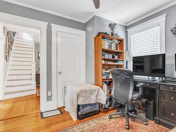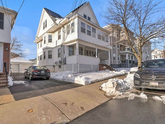 This enchanting multi-family home, with 2,629 sq ft of inviting living space, is an exceptional opportunity for investment or as a charming owner-occupied residence. Offering 5 bedrooms and 2 baths, it's elegantly divided into a spacious 3-bedroom, 1-bath unit and a cozy 2-bedroom, 1-bath unit. You'll appreciate the exquisite woodwork, hardwood floors, and delightful built-ins that add character and warmth. The second-floor kitchen is updated with sleek stainless steel appliances and granite countertops, catering to modern culinary needs. Step outside to the charming front porch, perfect for relaxing, or enjoy the convenience of a 2-car garage. Located near Swan Street Park and with quick access to Route 1 and Interstate 93, it ensures easy connectivity to local amenities and transportation. Both units are move-in ready, with potential for rent enhancements. The basement also provides two private exterior entrances, adding versatility.
