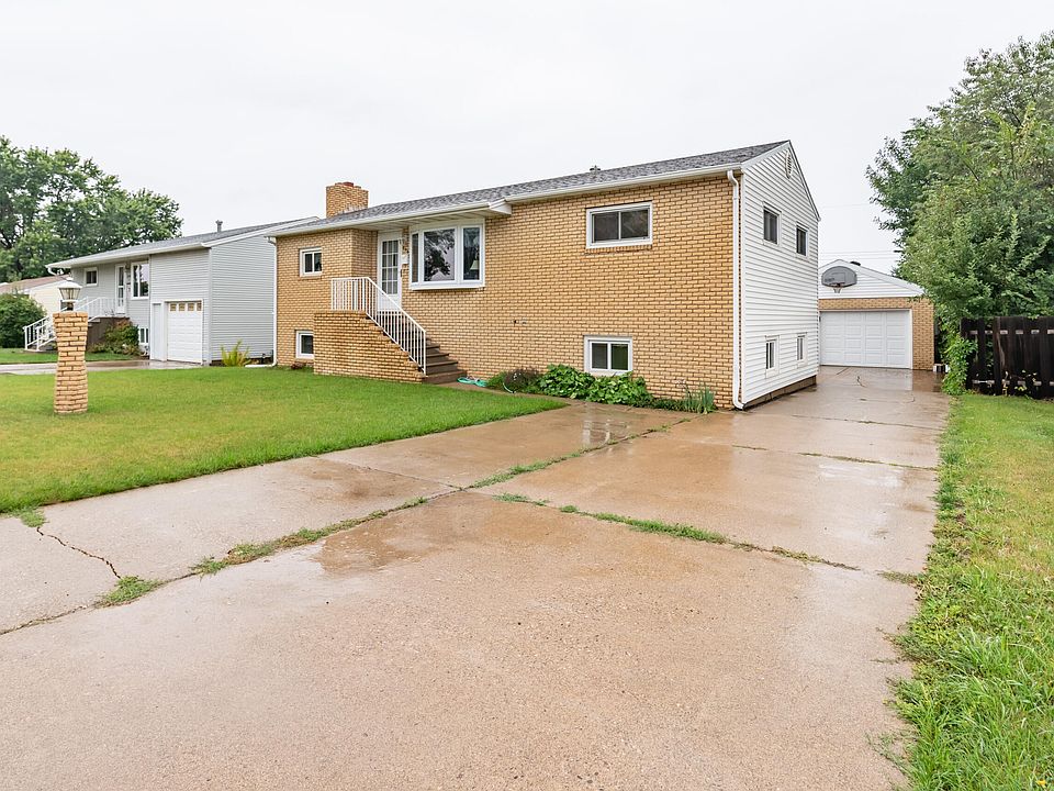 This charming home features a bright main-level living room with hardwood floors and a cozy gas fireplace, complemented by a well-appointed kitchen and dining room, a bathroom with a jetted tub, two comfortable bedrooms, a convenient main floor laundry, and newer windows. The basement offers a spacious family room with an electric fireplace, a 3/4 bathroom, a nonconforming bedroom, and a practical storage room. Outside, the backyard boasts two decks for relaxation and entertaining, along with an oversized single garage for ample parking and storage.