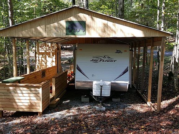 Unique opportunity to own two RV lots in Coosawattee, with a beautiful 33ft "Jay Flight" by Jayco travel trailer. Lots are next to each other & back up to few acres of green space. Both lots have water, electric & sewer. Lot w home has a 22 by 34 ft cover & new deck w locked storage room that could double as laundry. Home is in impeccable condition. All construction is new & done to Gilmer County & Coosawattee code. The lots are secluded & private-yet within walking distance of pool & mail boxes. Home features a queen master bedrm, full size bathroom & shower. Living room has 2 queen size sleeper sofas. There are 3 slide outs on the home, which give it amazing room. This is one of the nicest lot/home combinations in Coosawattee. Sale includes lots 364 & 363
