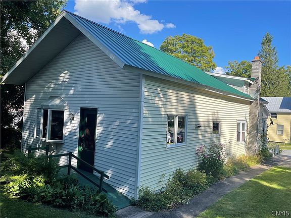 Enjoy village living from this lovely 3-bedroom 1-bath Bungalow located on a quiet side street in Boonville. This home features a first floor bedroom with a connected bathroom, large eat-in kitchen with a laundry area and an extra dining space for entertaining. There is a den/study area separating the kitchen and living room that at one time was used as a formal dining room. Upstairs you will find two more bedrooms with additional closet space. This home also features newer vinyl siding replaced within the last 10yrs. A new metal roof within the last 3 years and a side lot on the left side of the home for additional outdoor space. On Boonville Municipal Power.